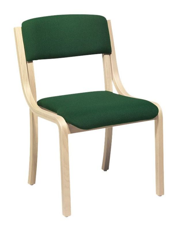 Konferensstol Chelsea, björk, utan armstöd, grön. En staplingsbar konferensstol av formpressad bok eller björk. Går att få med armstöd eller utan armstöd, finns i flera olika färger. Tjock stoppning i sits och rygg. Fabriksmonterade kopplingsbeslag till Chelsea finns som tillbehör.