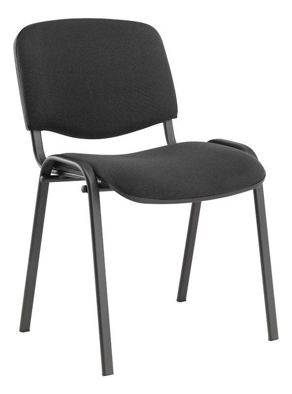 Konferensstol Fiesta, med stoppad rygg, svart/svart, 4 st/fp. Säljs i förpackning om 4 styck per förpackning. Konferensstol som är stapelbar med extra tjock stoppning och lite bredare sits. Bekväm och smidig stol för konferensen. Sitsen är klädd med 100 % Trevira-tyg. Ryggens baksida är täckt med skyddskåpa i plast.