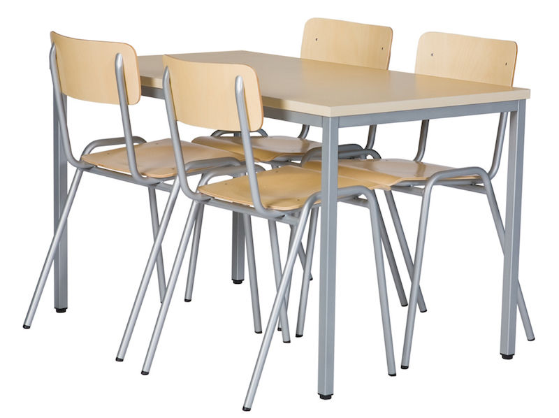 Bord med 25 mm skiva i björklaminat och silverlackerade ben.