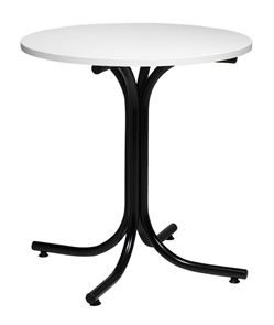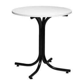 Matsalsbord Big Apple, Ø 1100 mm vit/svart. Praktiska runda matsalsbord som finns i tre olika storlekar och färger. Storlek från 700 mm till 1100 mm i diameter på skivan. Skivan finns i bok, björk, ek och vit laminat. Stativet finns i kromat, svartlackerat eller silverlackerat utförande. Ställfötter på varje ben så ditt bord kan stå stabilt även på ojämnt underlag, samt förhindrar att bordet glider runt.