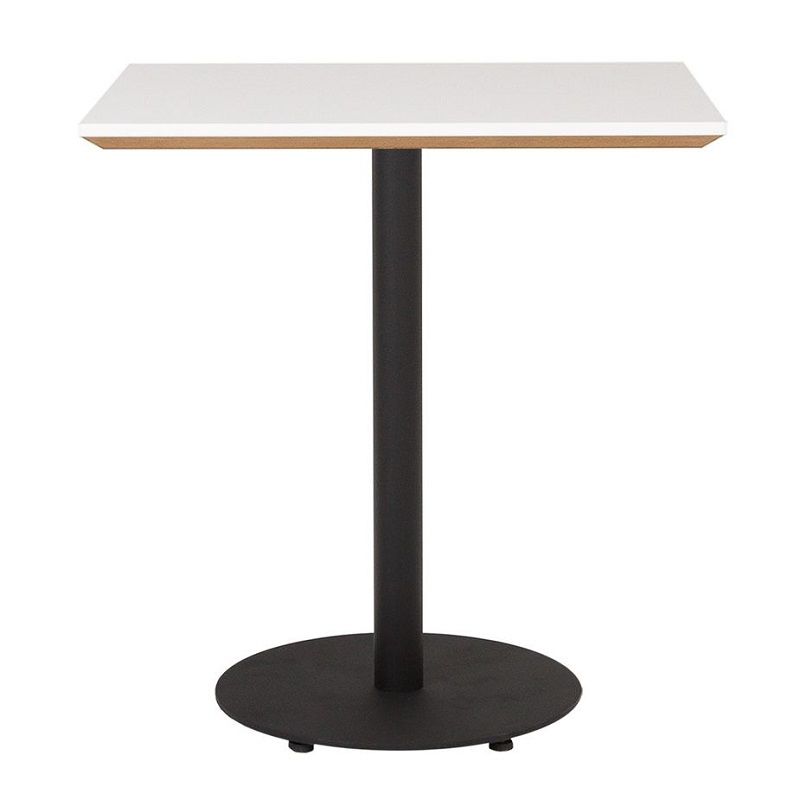 Pelarbord Trend, BxDxH 700x700x755 mm, svart rundfot. Ett modernt bord med skiva i vit laminerad MDF. Skivan har vit kantlist med 30 graders fasad kant för ett smäckert utseende. Stativ finns i krom, svart och vit lackering och med rund alternativt fyrkantsfot. Höjd 755 mm. Skivan finns i flera olika storlekar.