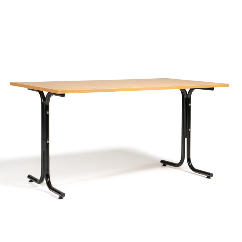 Matsalsbord Vicky Square, LxB 1400x800 mm, bok/svart. Funktionella rektangulära cafebord och matbord som finns i storlekar från 1200 mm till 1800 mm i längd. Bredd 800 mm. Kommer med justerbara fötter så bordet kan stå stabilt även på ojämnt underlag. Skivan finns i björk, bok eller vit laminat. Laminat är en stryktålig yta som tål mycket användande. Stativ kommer i kromat, svartlackerat eller silverlackerat utförande.