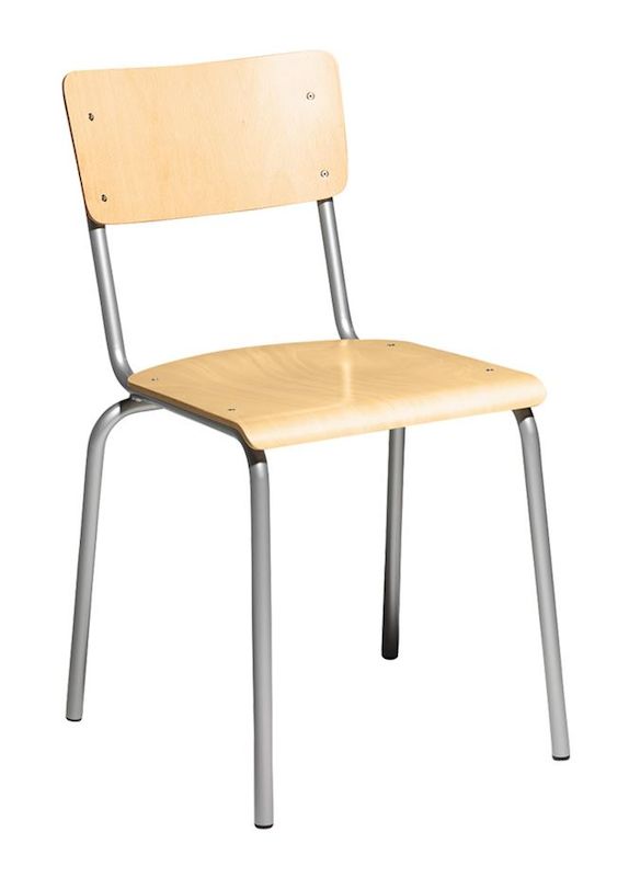 Matsalsstol Breakfast. En staplingsbar stol i formpressad bok, med ben i epoxylackerat stål. Stativet går att få i silver, svart eller krom. Passar till Matsalsbord Breakfast, men även till andra typer av bord.