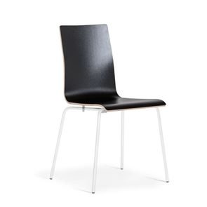 Stolarna har formpressade sitsar och ryggar, gjutna i ett stycke, och en yta av hårt och slitstarkt högtryckslaminat. Stolsben av kromat stålrör, vilket gör dem både uthålliga och lätta att rengöra.