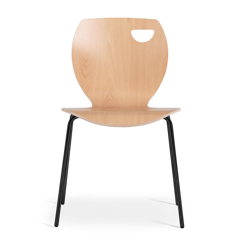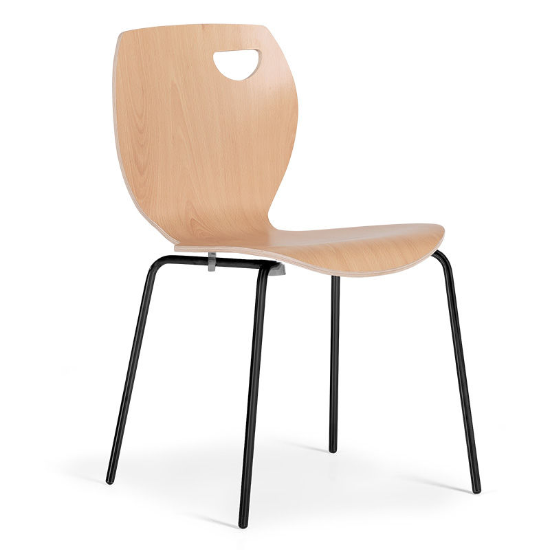 Skalstol Laura, stapelbar, 4-pack, bok/svart. En stapelbar skalstol som passar utmärkt för lunchrummet eller konferensrummet. Finns i flera färger. Formpressad sits och rygg i ett stycke med en yta av hård och slitstark högtryckslaminat. Underredet i form av en kryssfot är kromat eller lackerat.