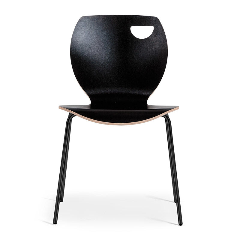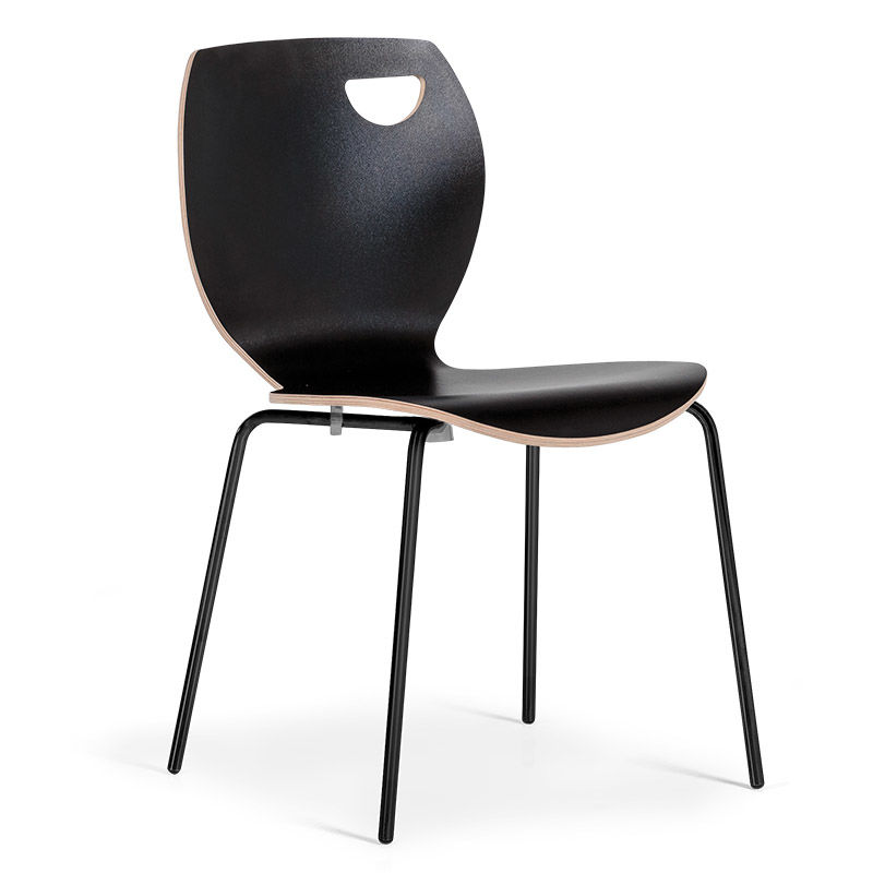 Skalstol Laura, stapelbar, 4-pack, svart/svart. En stapelbar skalstol som passar utmärkt för lunchrummet eller konferensrummet. Finns i flera färger. Formpressad sits och rygg i ett stycke med en yta av hård och slitstark högtryckslaminat. Underredet i form av en kryssfot är kromat eller lackerat.