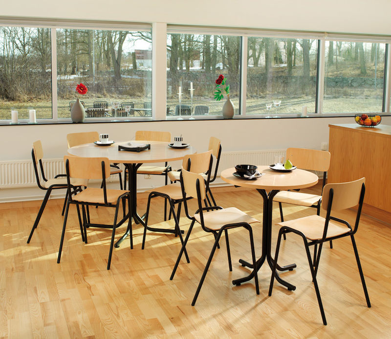 Stol Skara, med sits i bokplywood. Svartlackerat stativ med sits och rygg i bokplywood. Klassisk och funktionell stålrörsstol med gedigen konstruktion och bra kvalité. Stolen är stapelbar med skålad sits, svartlackerat stativ med sits och rygg i bokplywood.