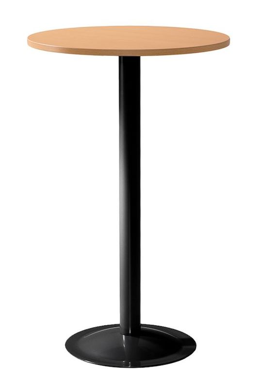 Ståbord Sputnik, bok/svart. Ett ståbord som kommer med ett svart eller silverlackerat stålstativ med bordsskiva i laminat. Skivan finns i bok, björk, ek eller vit laminat. Höjd 1100 mm, diameter 700 mm.