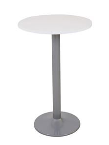 Ståbord Texas, Ø 700 mm, svart/silver. Ståbord med en rund pelarfot i krom. Kommer med justerbara tassar under fotplattan så man kan ställa den även på ojämnt underlag. Skiva i bok, björk, vit eller svart laminat. Pelare Ø 87 mm och fotplatta 500 mm. Finns med en eller två pelare.