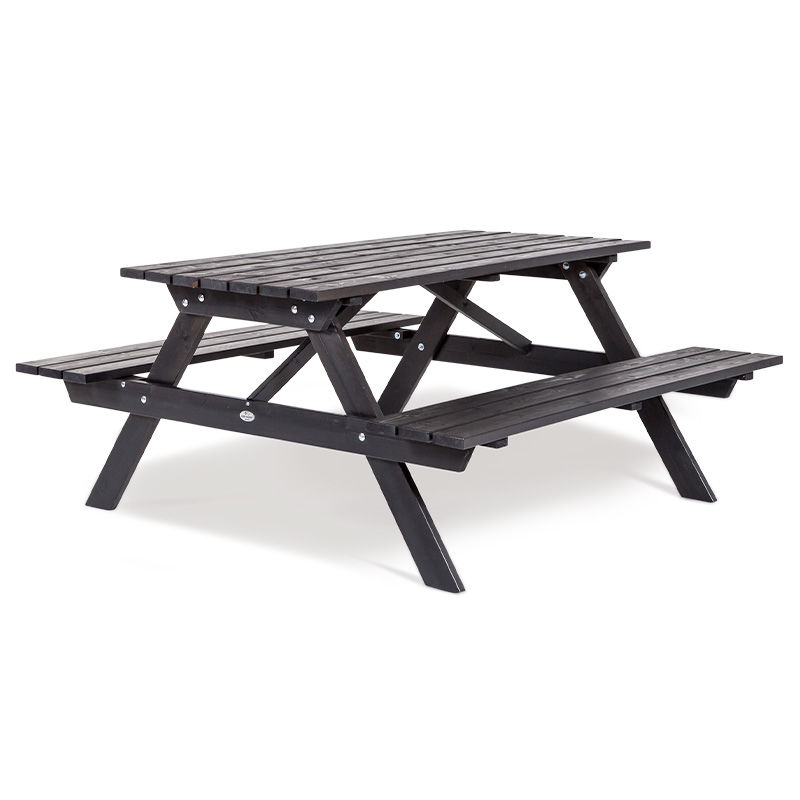 Bänkbord Café, LxBxH 1500x1500x715 mm, svart. Svensktillverkat picknickbord för 6 personer. Tillverkat av FSC ®-märkt norrländsk furu med treskikts-målning, grundfärg plus två lager täcklasyr.