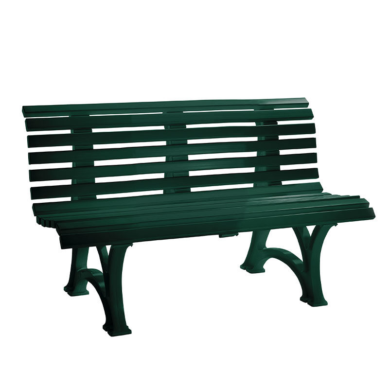 Parkbänk Ropi 13. Parkbänk tillverkad i UV- och väderbeständig plast som är lätt att underhålla. Totalt har bänken 13 ribbor. Sitt- och ryggribbor i PVC, 50x30 mm. Fötter i polypropylen. Förberedd för förankring. Levereras omonterad, enkel att montera. Passande för offentliga miljöer.