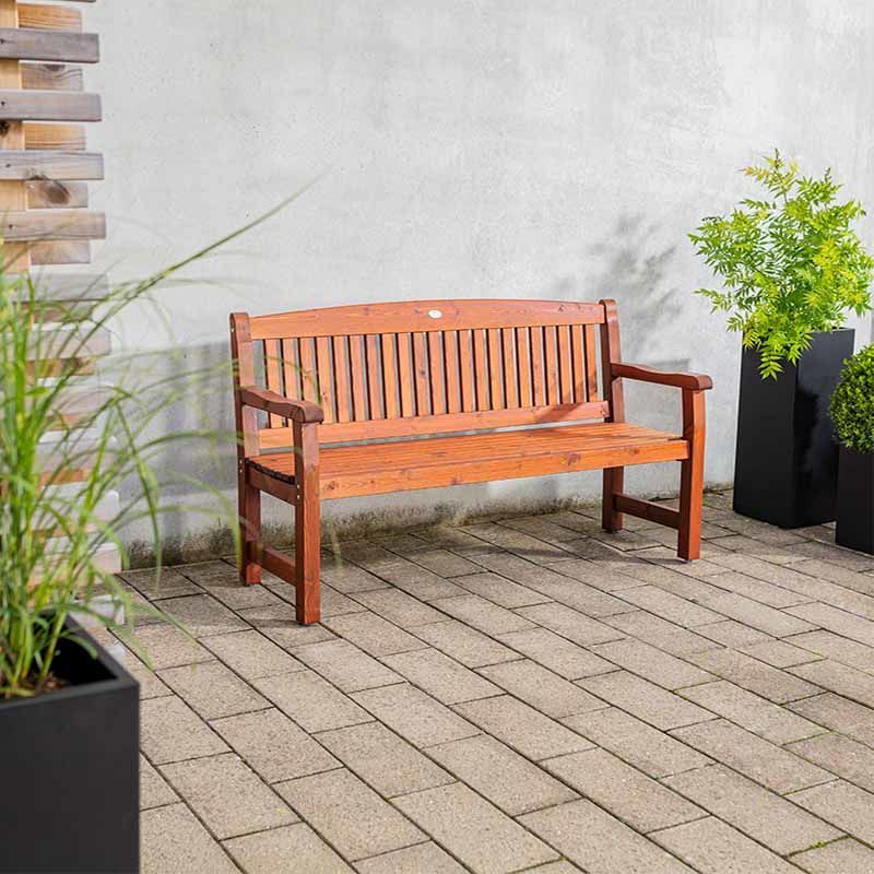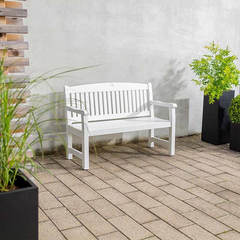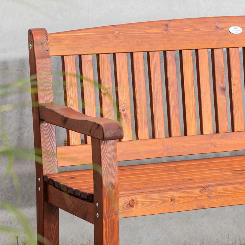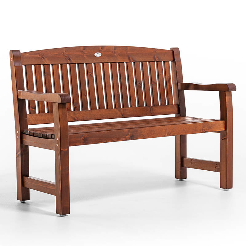 Parkbänk Kattvik. Elegant och stabil soffa av massiv furu i antingen brun eller vit färg. Stabil parkbänk med armstöd som passar in i de flesta offentliga miljöer alternativt som trädgårdsmöbel. Sittdjup 460 mm, sitthöjd 440 mm. Levereras omonterad.