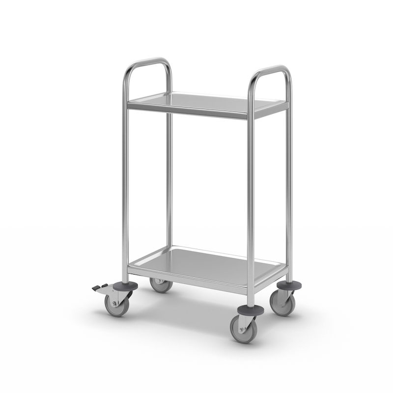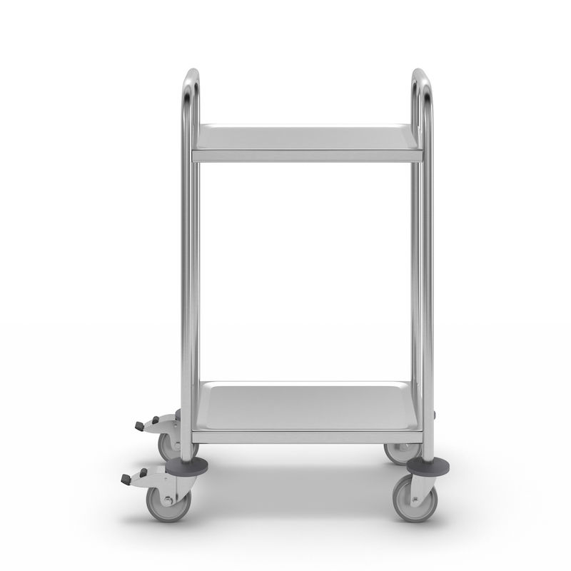 Rostfri serveringsvagn Luna, 2 hyllplan, LxBxH 705 x 405 x 940 mm. Universell användning i kök och matsalar eller på kontor. Förstärkt botten med stoppkant runtom för extra stabilitet.