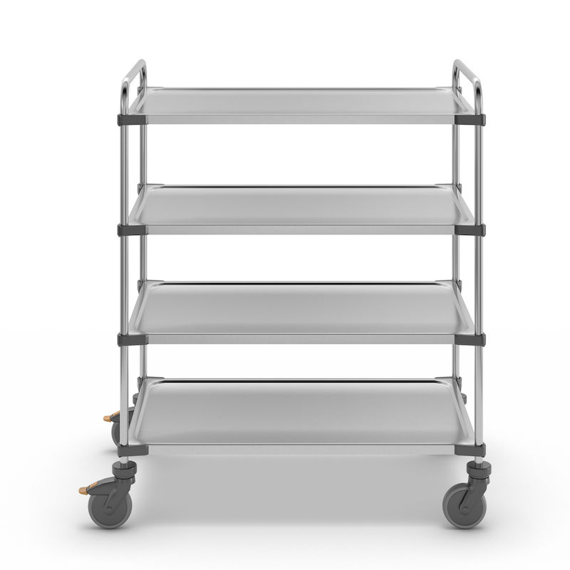 Rostfri serveringsvagn Nova, LxBxH 1070 x 670 x 1260 mm, lastyta 1000 x 600 mm, 4 hyllplan, lastkapacitet 160 kg.