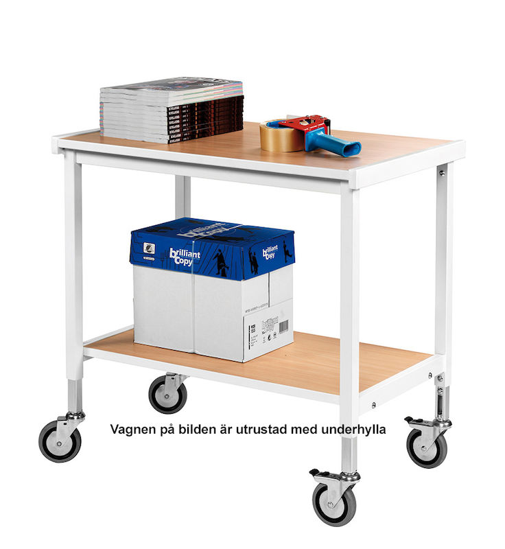 Rullbord Tjörn, vit 500x800 mm. En stabil och lätthanterlig konstruktion för de flesta användningsområden. Bordet är ställbart i höjd. Bordsskiva i laminat, tjocklek 20 mm.
