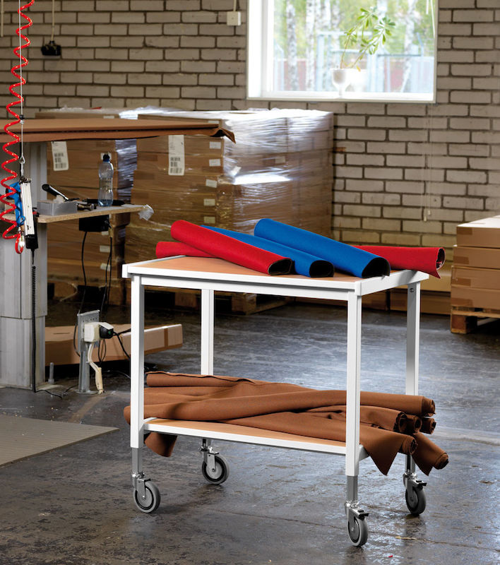 Hjulutrustning: Fyra länkhjul, Ø 100 mm varav två låsbara.