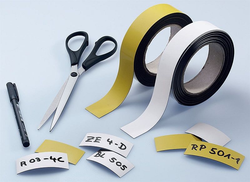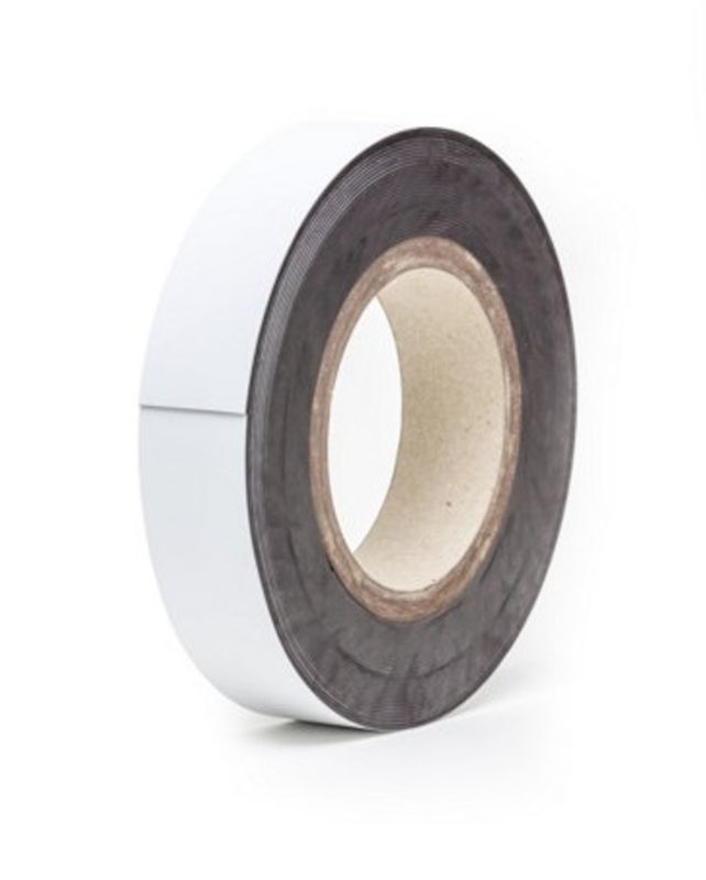 Magnetband på rulle, vit, HxL 40 mm x 10 m. För bättre överblick i hyllor, lagerlådor, behållare etc. Magnetband av högvärdig, flexibel magnetfolie, här i hel rulle så du kan kapa efter eget behov. Går att skriva på med vanlig filt- och fiberpenna. Vid användning av vattenlöslig eller avtorkningsbar penna kan skyltarna återanvändas.