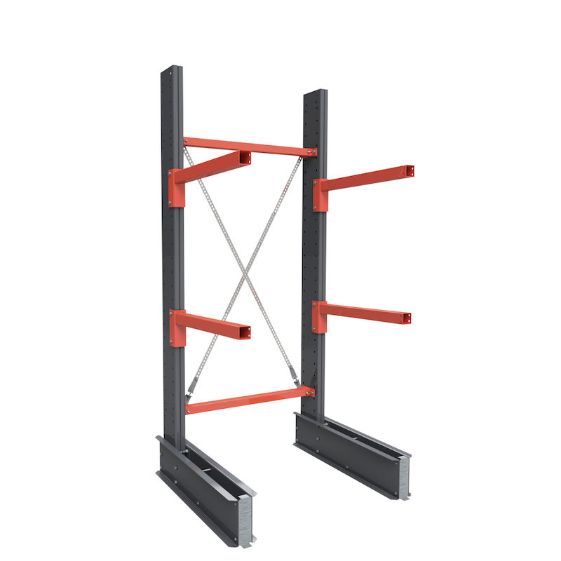 Grenställ Igor, enkelsidig, HxB 3000 x 1000 mm avstånd 1000 mm, grundsektion. Komplett grenställ med stolpar, fötter, armar, längd- och korskopplingar samt betongskruvar för förankring i golvet. Bärkapacitet per stolpe inklusive fotbalk.