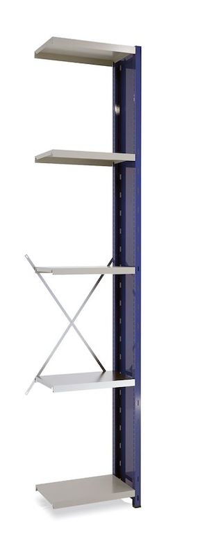 Lagerhylla Blå/Grå, täckt gavel. är ett flexibelt hyllsystem som du kan bygga ut i oändlighet. Belastning på 150 kg/hyllplan som enkelt kan uppgraderas till 225 kg/hyllplan med tillbehör, gör att den klarar av det mesta. klarar totalt hela 1200 kg per sektion. Enkel montering, hyllplan monteras enkelt med hyllhakar utan några verktyg eller skruv. Kan inredas med lådor, avdelare, verktygspaneler, dörrar med mera, allt efter behov. Hyllan ska förankras i vägg eller golv. Golvskoning ingår som standard. Denna varianten kommer med täcka gavlar istället för öppna sidor. Ett flexibelt hyllsystem helt enkelt, du komponerar hyllan med utgångspunkt från ditt förvaringsbehov och lokalutseende.