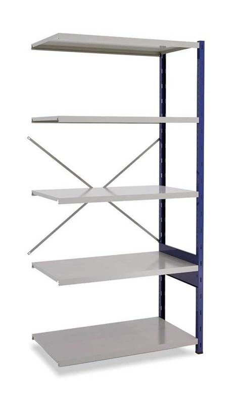 Lagerhylla Blå/Grå, utbyggnad, BxDxH 965x500x1960, öppen, enkel montering. Stadig, stabil och lättmonterad - En lagerhylla för kontinuerlig användning