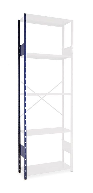 Lagerhylla Hyllgavelstege, öppen, DxH 400x3000, blå. Består av två vertikalstolpar, plastfötter och ett gavelstag som förbinder stolparna och stabiliserar dom. Vid 2500 och 3000 mm höjd är det 2 gavelstag per sida. Finns i flera olika djup och färger, kombinera ihop med ditt val av hyllplan för din egen version av !