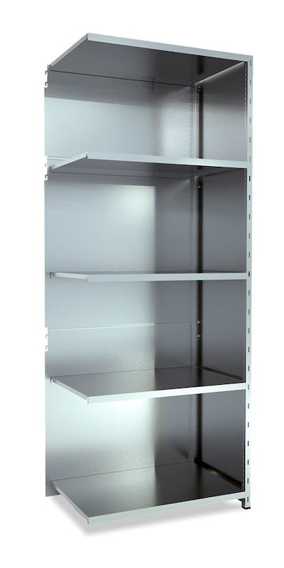 Lagerhylla Galvaniserad, täckt gavel & rygg, utbyggnad, BxDxH 965x600x2500. är ett flexibelt hyllsystem som du kan bygga ut i oändlighet. Belastning på 150 kg/hyllplan som enkelt kan uppgraderas till 225 kg/hyllplan med tillbehör, gör att den klarar av det mesta. klarar totalt hela 1200 kg per sektion. Enkel montering, hyllplan monteras enkelt med hyllhakar utan några verktyg eller skruv. Kan inredas med lådor, avdelare, verktygspaneler, dörrar med mera, allt efter behov. Hyllan ska förankras i vägg eller golv. Golvskoning ingår som standard. Denna varianten kommer med täcka gavlar istället för öppna sidor och en täckt rygg. Ett flexibelt hyllsystem helt enkelt, du komponerar hyllan med utgångspunkt från ditt förvaringsbehov och lokalutseende.