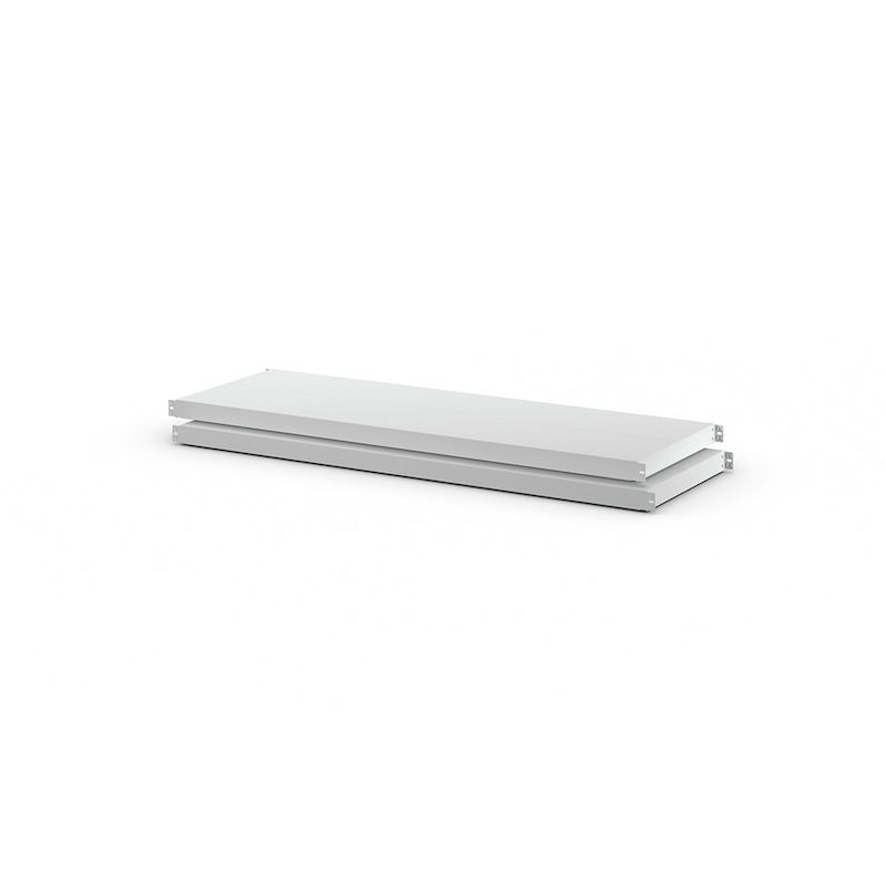 Hyllplan i stål, 2-pack till lagerhylla Mark, djup 490 mm, bredd 1442 mm. - Bredd: 1442 mm - Material: stålplåt - Färg: ljusgrå RAL 7035 - Max. last: 200 kg - FP: 2 st - Djup: 490 mm - Vikt per styck: 12.84 kg