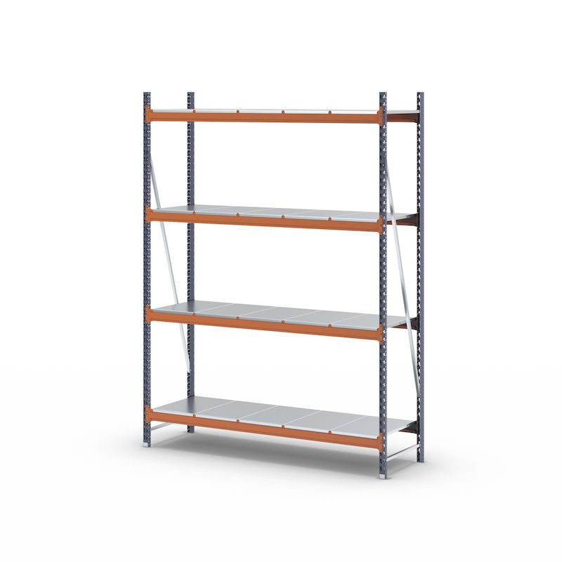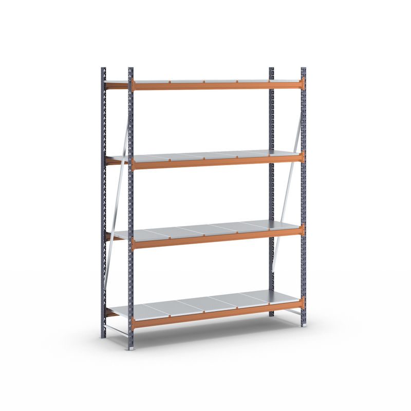 Hyllställ Aleyna, belastning per sektion 1600 kg, med stålhyllor, HxBxD 2500 x 1900 x 600 mm, grundsektion.