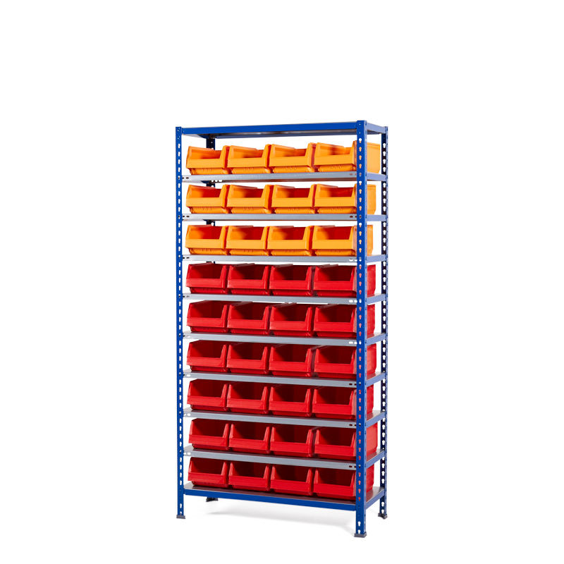 Enkel att montera, helt utan och skruvar och verktyg. Passar lika bra som arkivhylla som lagerhylla.