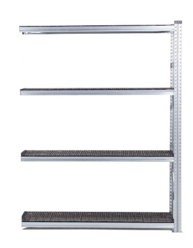 Lagerhylla Flex, utbyggnad, BxDxH 1506x320x1972, 4 st svarta hyllplan. Ett flexibelt hyllsystem av galvaniserat stål med många användningsområden. Låg egenvikt med klarar hög belastning, 135-350 kg/hyllplan. Flyttbara balkar, 33 mm:s intervall. Olika typer av hyllplan för olika arbetsmiljöer. Enkel att montera (inga bultar eller skruvar). Kan användas från båda håll, inga krysstag behövs. Gavlar levereras monterade, bärbalkar och metallfötter ingår i varje sektion. Samtliga plasthyllplan är perforerade för att fungera i miljöer med sprinklersystem då vattnet rinner igenom hyllplanen. Alla plasthyllplan är även godkända för livsmedelsmiljö.