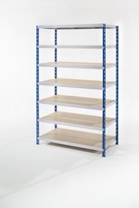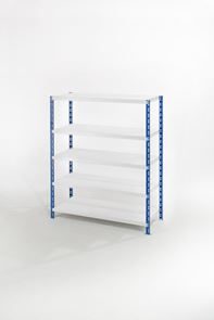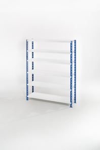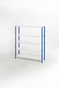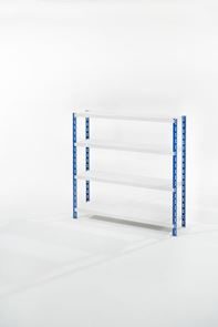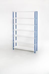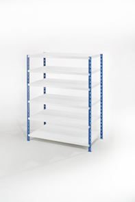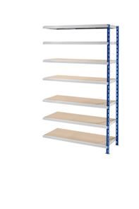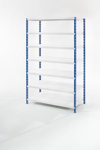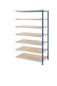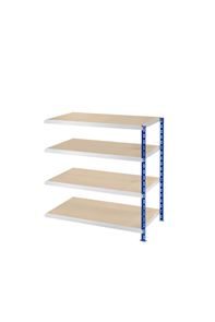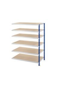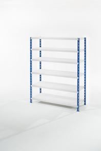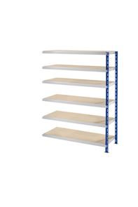 Lagerhylla Juhani, D 500 mm, med hyllplan av stålplåt, utbyggnadssektion, HxB 1976 x 1525 mm. Skruvar och pluggar för fotplattorna ingår ej.