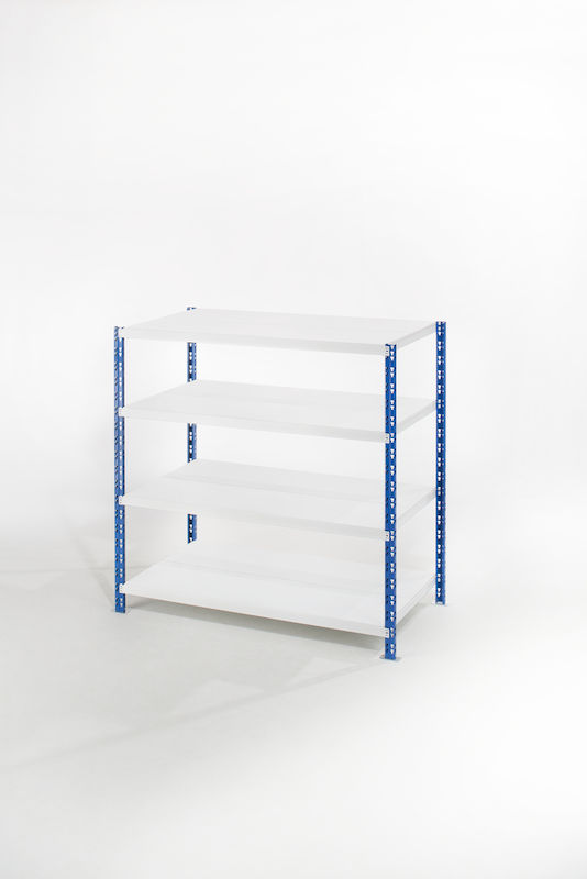 Lagerhylla Juhani, D 700 mm, med hyllplan av stålplåt, utbyggnadssektion, HxB 2522 x 1525 mm. Skruvar och pluggar för fotplattorna ingår ej.