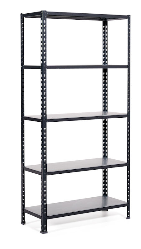 Lagerhylla Lokka, BxDxH 1000x300x2000 mm, grå. Stabil stålhylla med galvade hyllplan. Enkel att montera, helt utan skruvar och verktyg. Stabil industrihylla med belastning upp till 200 kg/hyllplan och 1850 kg/sektion.
