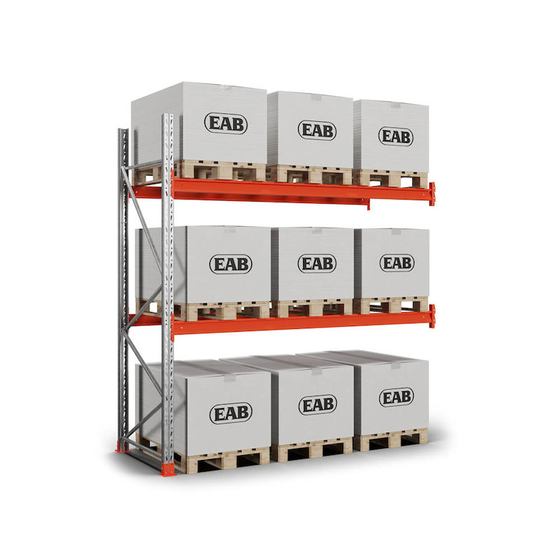 Pallställ Space utbyggnad, B1100xH3000 mm för 9 pallar, 750 kg/pall, max 9000 kg/sektion. Kraftiga pallställ med beprövad konstruktion där säkerhet och funktion prioriterats.