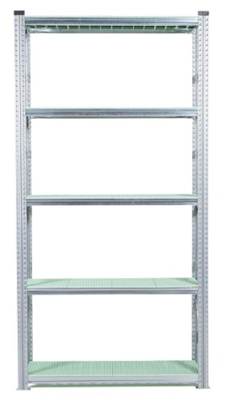 Lagerhylla Flex, grund, BxDxH 1276x400x2500, 5 st gröna hyllplan frysmiljö. Ett flexibelt hyllsystem av galvaniserat stål med många användningsområden. Låg egenvikt med klarar hög belastning, 135-350 kg/hyllplan. Flyttbara balkar, 33 mm:s intervall. Olika typer av hyllplan för olika arbetsmiljöer. Enkel att montera (inga bultar eller skruvar). Kan användas från båda håll, inga krysstag behövs. Gavlar levereras monterade, bärbalkar och metallfötter ingår i varje sektion. Samtliga plasthyllplan är perforerade för att fungera i miljöer med sprinklersystem då vattnet rinner igenom hyllplanen. Alla plasthyllplan är även godkända för livsmedelsmiljö.