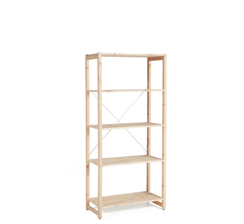 Trähylla Tidan, grund, HxBxD 1780x830x500 mm. En trähylla i obehandlad massiv furu. Produceras från FSC-certifierad råvara. Trähyllan finns som grundsektion eller utbyggnadssektion.