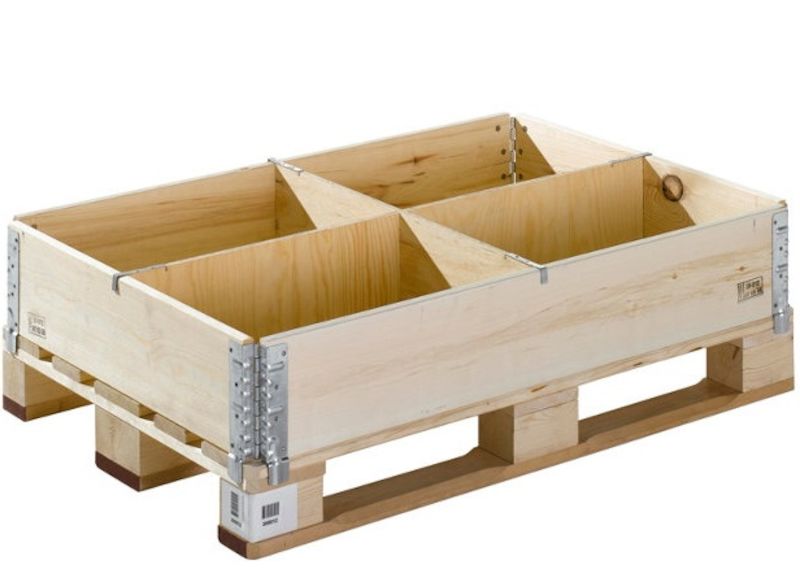 Fackindelning till Pallkrage, EUR 1200x800 mm, 4 fack. För 200 mm höga träkragar i format 1200x800 mm. Enkelt instickbara väggar av 12 mm tjock plywood. Träkrage ingår EJ, endast fackindelningssats. Finns i två varianter, 4 eller 8 indelning.