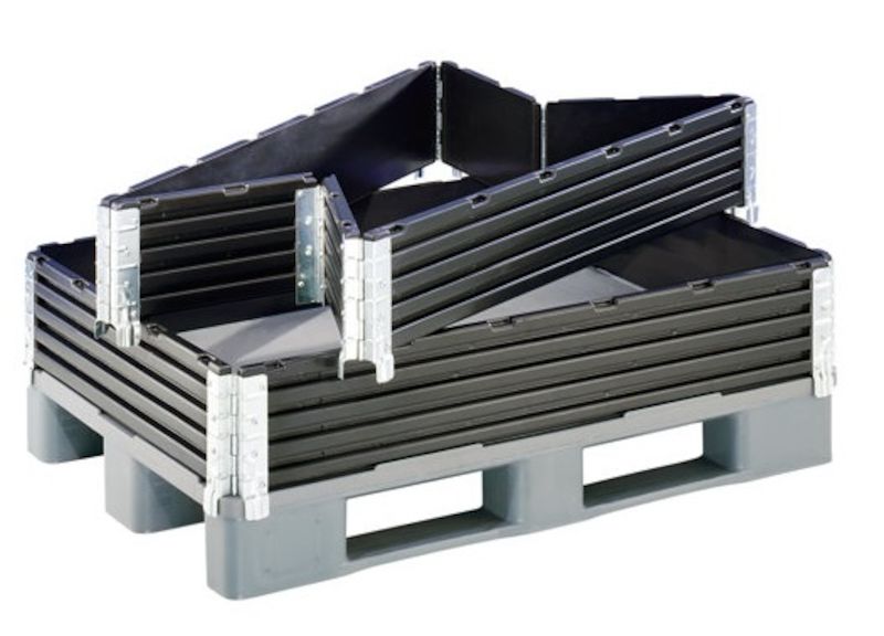 Pallkrage av plast, LxB 1200x800 mm, 6 gångjärn, från 5 eller fler, 2 st/fp. Säljs 2 st/fp, för EUR Pall eller sjöpall. Okänslig för väta och fuktighet då dom är gjorda av plast, vilket ger dom lång livslängd. Låg egenvikt med ömsesidigt låsande förstärkningar. Pallkrage i svart ABS-plast, med vikgångjärn för platssparande förvaring. Ramtjocklek 20 mm. Kan staplas på varandra för att spara plats. Pall ingår inte.
