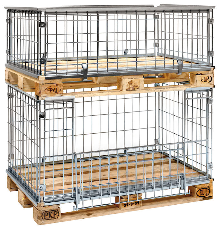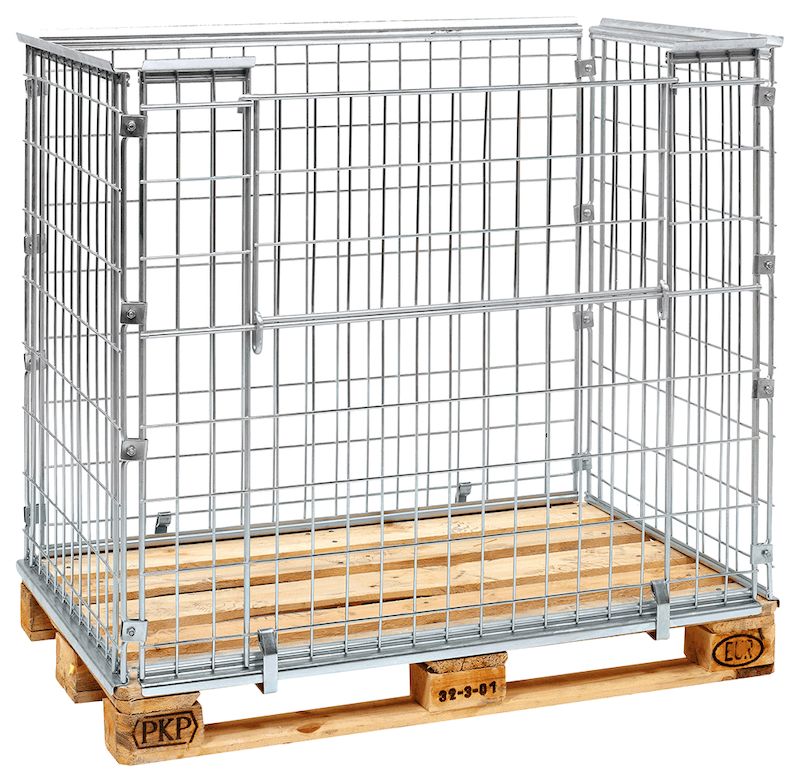 Pallram med nät Unnan, LxBxH 1200x800x400 mm. Kan monteras på EUR-pall eller på plattformsvagn. Elförzinkade samt hopfällbara för minimalt utrymme. Pallramarna har nätmaskor 65x120 mm.