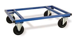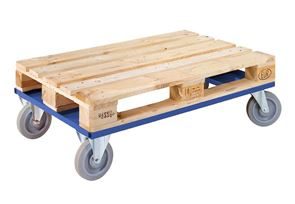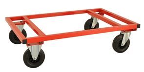 Avsett för hantering av EUR-pall eller halvpall. 2 st. fasta och 2 st. länkhjul. Max belastning 800 kg. Finns i röd eller blå färg.
