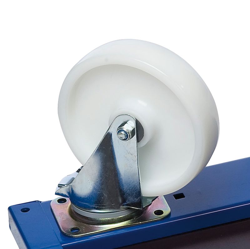 Avsett för hantering av EUR-pall eller halvpall. 2 st. fasta och 2 st. länkhjul. Max belastning 800 kg. Finns i röd eller blå färg.