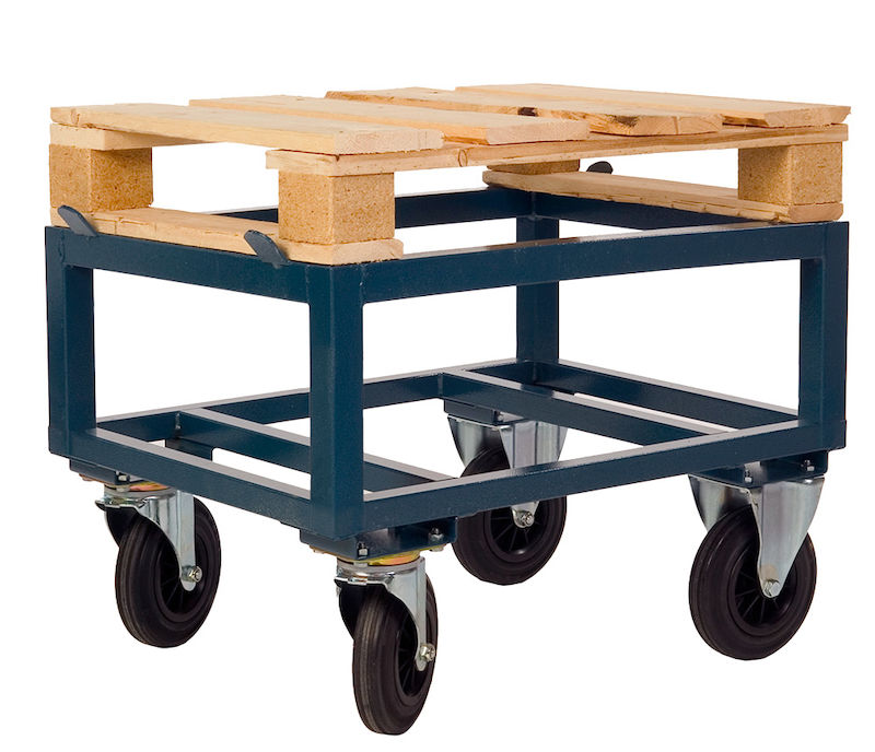 Pallvagn Eksjö, 800x600 mm, höjd 500 mm 1000 kg. Svensktillverkad pallvagn i toppkvalité för halvpall. Utrustad med stödklackar på två sidor, som håller pallen på plats.