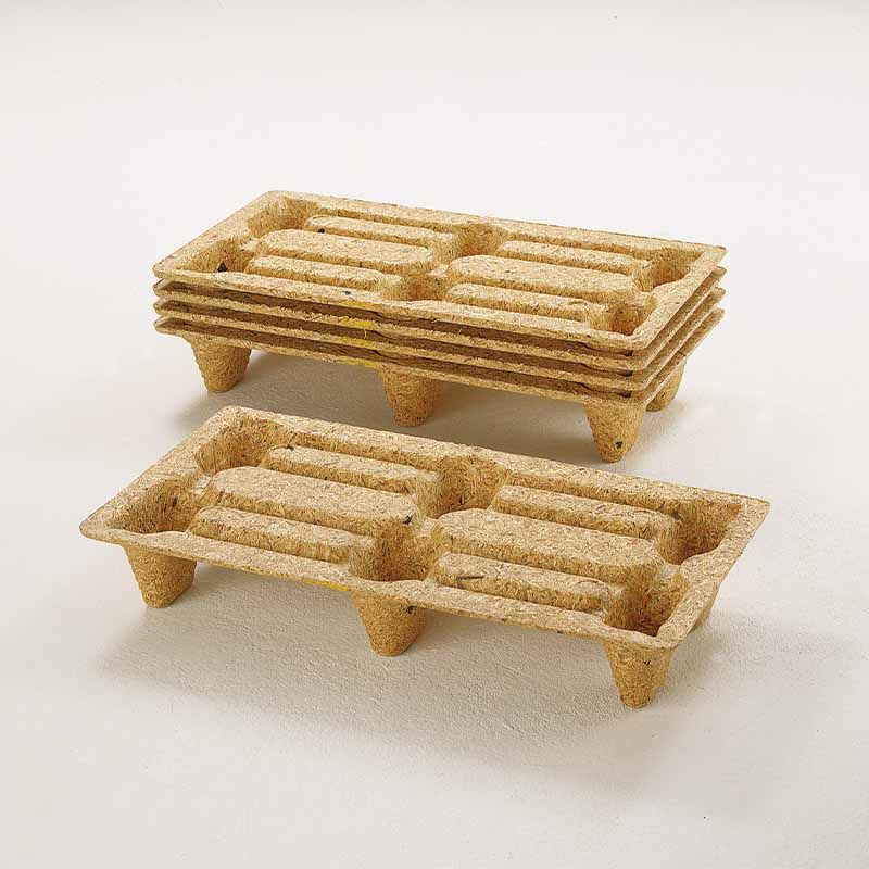 Lastpall träfiber, LxB 800x400 mm, max 500 kg, 10 st/fp. En engångspall av träfiber som är staplingsbar med koniska fötter. Tillverkad av återvunnet trä och sågverksavfall, pallen kan återvinnas och är biologiskt nedbrytbar. Lastpallen är värmebehandlad och uppfyller kraven enligt IPPC för ISPM15 vilket gör den perfekt för transport över hela världen. Tillverkad med värme och tryck och därför helt fri från skadedjur. Tät botten. Krymp- och sträckfilmsvänlig tack vare rundade hörn. Finns i hel och halvpall, EUR samt Sjöpallsformat.