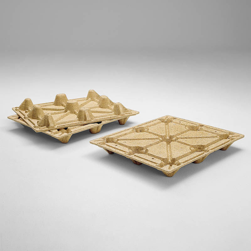 Lastpall träfiber, LxB 1140x1140 mm, max 1250 kg, 10 st/fp. En engångspall av träfiber som är staplingsbar med koniska fötter. Tillverkad av återvunnet trä och sågverksavfall, pallen kan återvinnas och är biologiskt nedbrytbar. Lastpallen är värmebehandlad och uppfyller kraven enligt IPPC för ISPM15 vilket gör den perfekt för transport över hela världen. Tillverkad med värme och tryck och därför helt fri från skadedjur. Tät botten. Krymp- och sträckfilmsvänlig tack vare rundade hörn. Finns i hel och halvpall, EUR samt Sjöpallsformat.