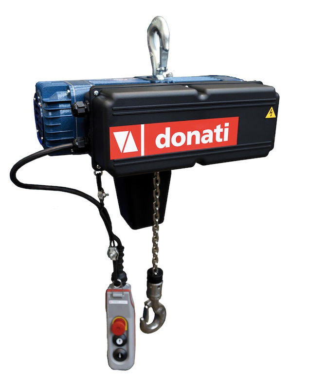 Telfrar Donati DMK, 125 kg, 8/2,5 m/min. Industritelfrar i absolut toppklass med maximal säkerhet. Telfern levereras med ett ergonomiskt manöverdon och en kättingsamlare för åtta meter kätting samt en manöverkabel på 1,8 meter. Telfern har skyddsklass IP55.