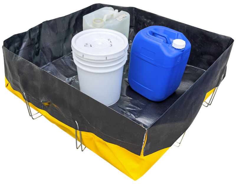 Uppsamlingskärl, hopvikbart Claudia, PE, svart/gul, uppsamlingsvolym 330 l. Hopfällbar spillbassäng av