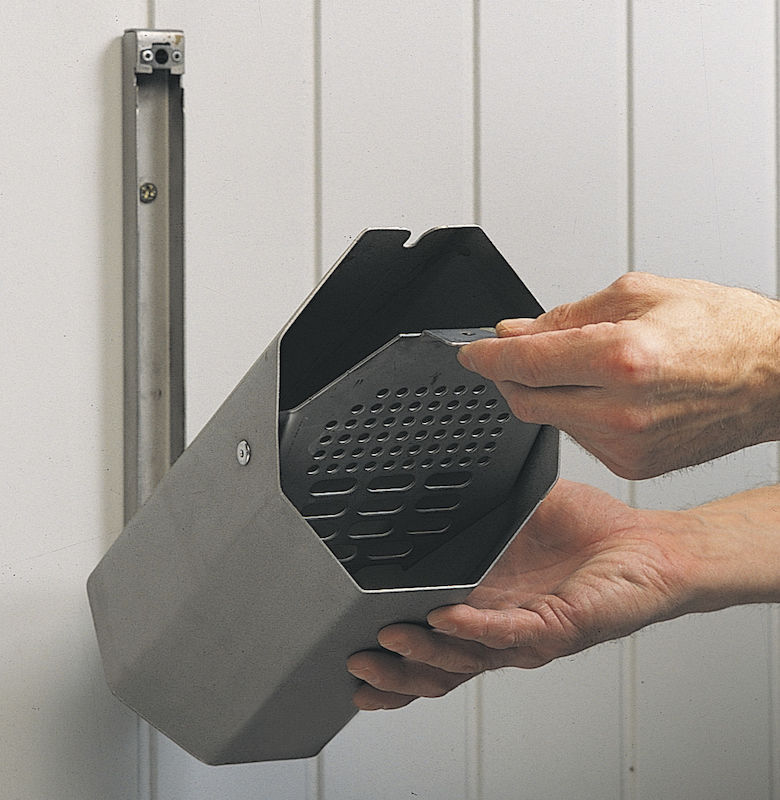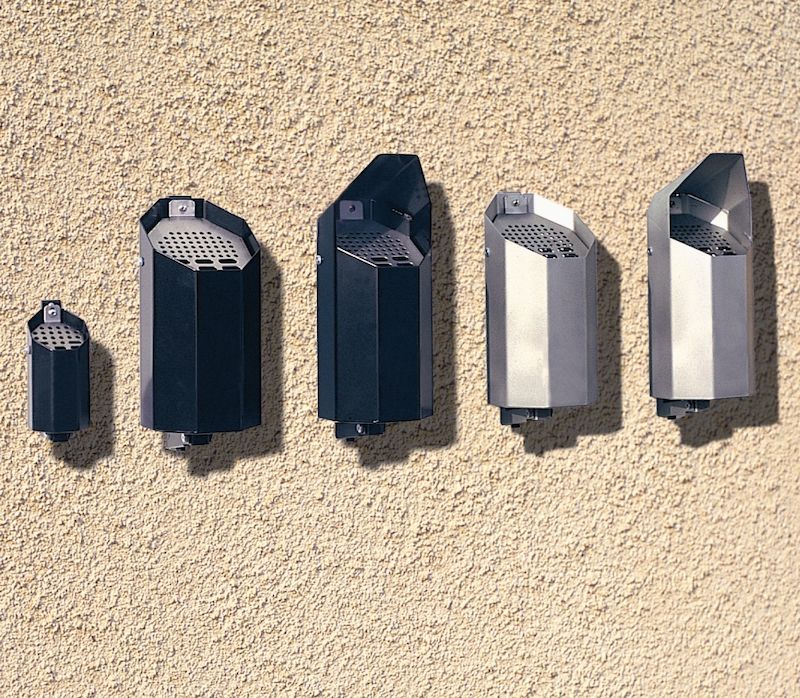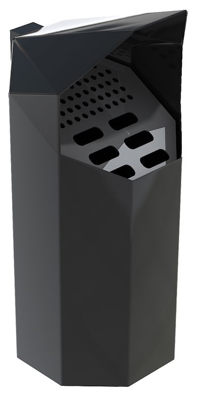 Askkopp för vägg Ulik, höjd 430 mm, svart/elförzinkad med tak. En askkopp som passar i alla offentliga eller privata miljöer. Placerad vid entrédörren ger den en diskret signal om att det är lämpligt att fimpa här. Askkoppen är lätt att fälla framåt och tömma.