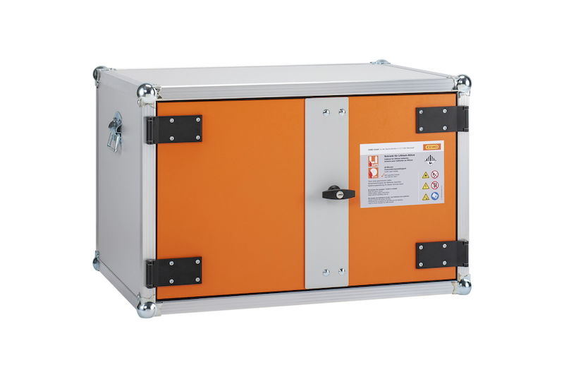 Batteriskåp Harald, utan fötter 520 mm, 230 V, orange/grå. De flesta brandincidenter kopplade till litiumbatterier inträffar under laddning.