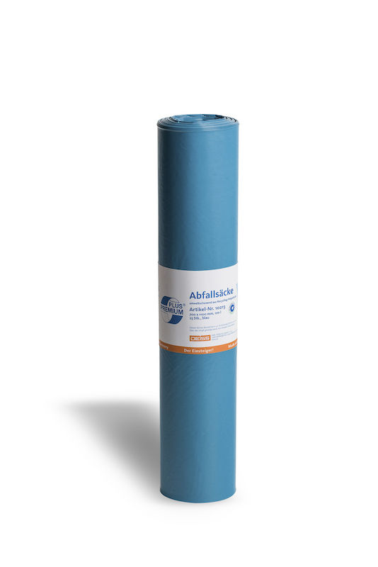 Sopsäck Melissa, 31 µm, BxH 700 x 1100 mm, 250-pack, blå. Med PREMIUM PLUS sparar du upp till 30 % CO2 jämfört med andra avfallssäckar i handeln.