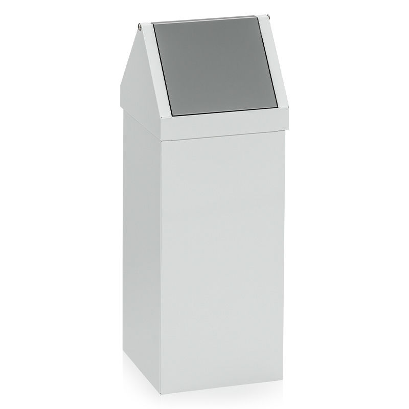 Praktisk och stilren avfallsbehållare för alla typer av inomhusmiljöer. Uppbyggd av en helsvetsad bottentunna och en monterad huv med vipplock.